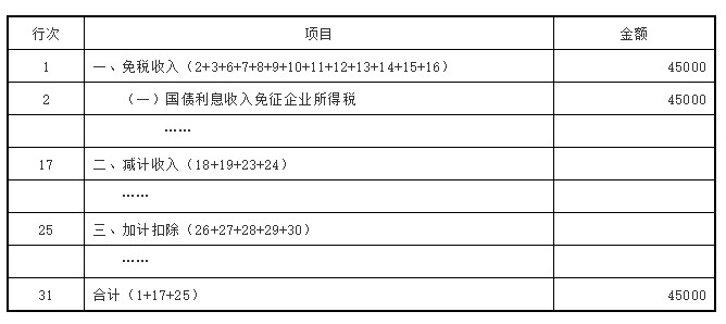 再将免税、减计收入及加计扣除优惠明细表第31行数据填入A100000中华人民共和国企业所得税年度纳税申报表(A类)第17行减:免税、减计收入及加计扣除。