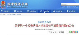 关于《国家税务总局关于统一小规模纳税人标准等若干增值税问题的公告》的解读