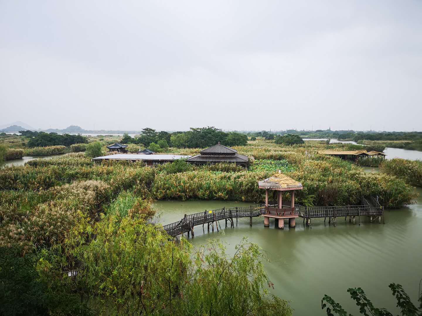专业学习之余,大家游览了下渚湖湿地风景区。湖面或开阔如漾,或狭窄如港,湖中有墩、墩中有湖;港中有汊、汊中套港,就像行走在一座巨大的水上迷宫里。
