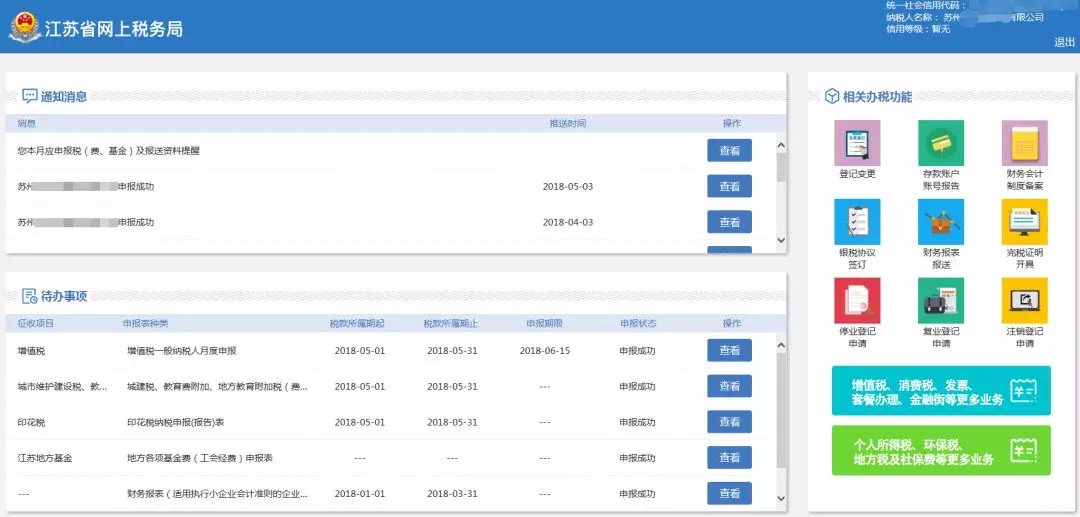 然后即可登录至江苏省网上税务局,先来看下总体的界面: