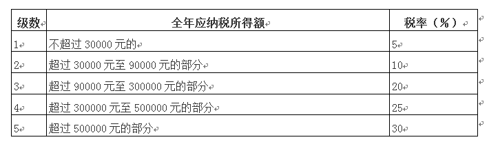 (注:本表所称全年应纳税所得额是指依照本法第六条的规定,以每一纳税年度的收入总额减除成本、费用以及损失后的余额。)