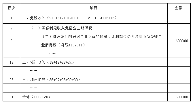 再将免税、减计收入及加计扣除优惠明细表第31行数据填入A100000中华人民共和国企业所得税年度纳税申报表(A类)第17行减:免税、减计收入及加计扣除。