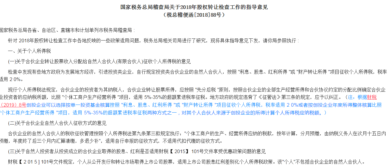 传说中的《关于2018年股权转让检查工作的指导意见》(税总稽便函[2018]88号)正式公布了